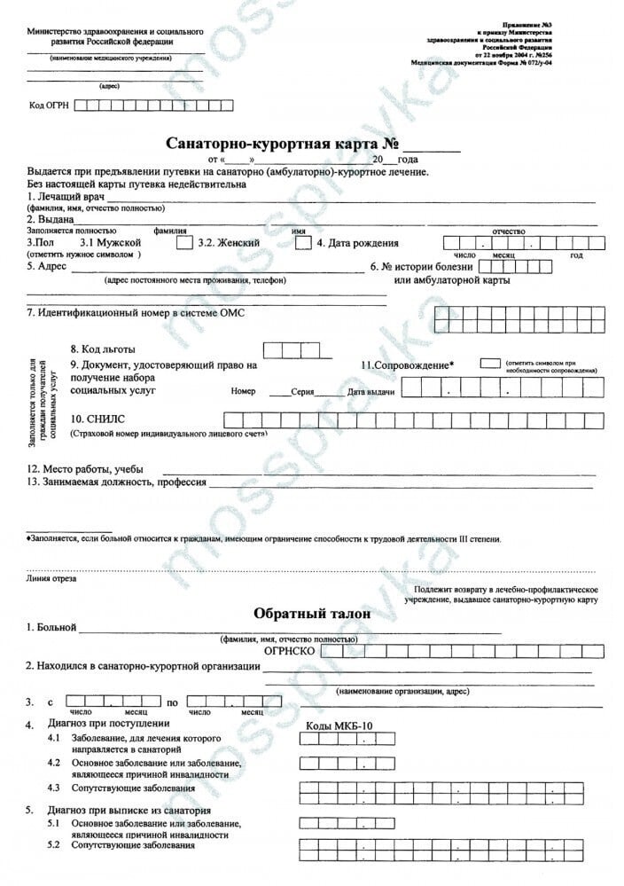 Санаторно-курортная карта — справка 072/у